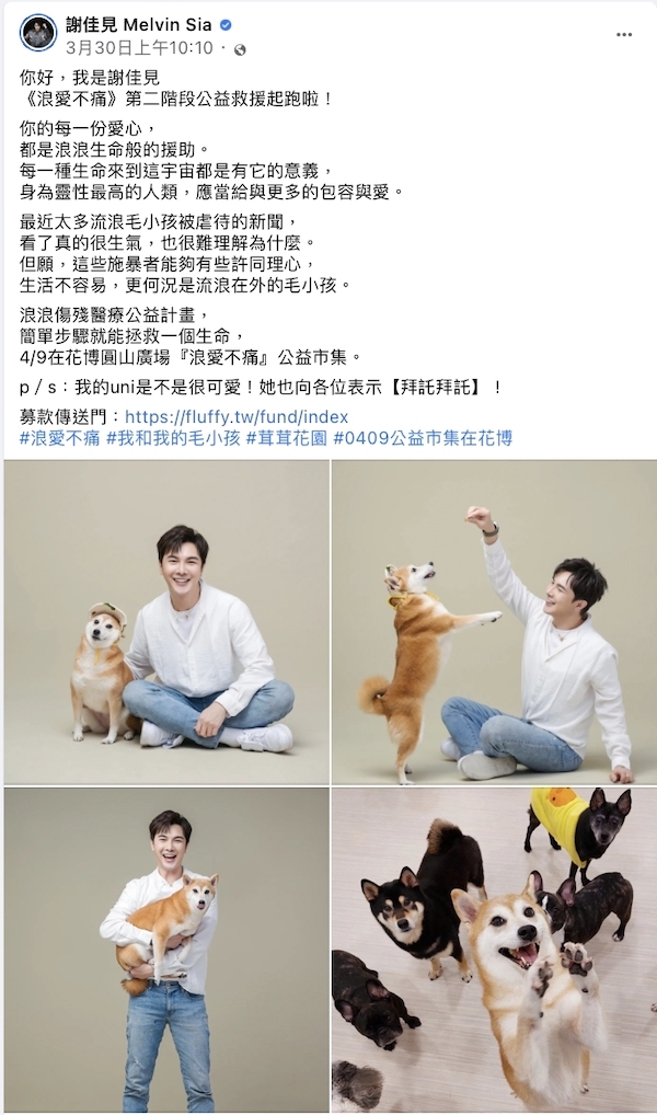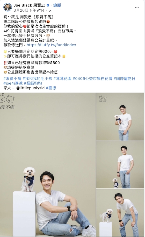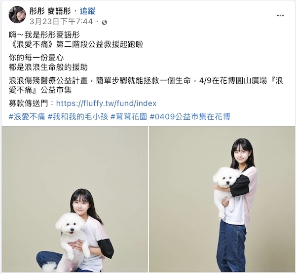 藝人共同愛心響應2023/4/9圓山花博寵物市集,一起『浪愛不痛』!