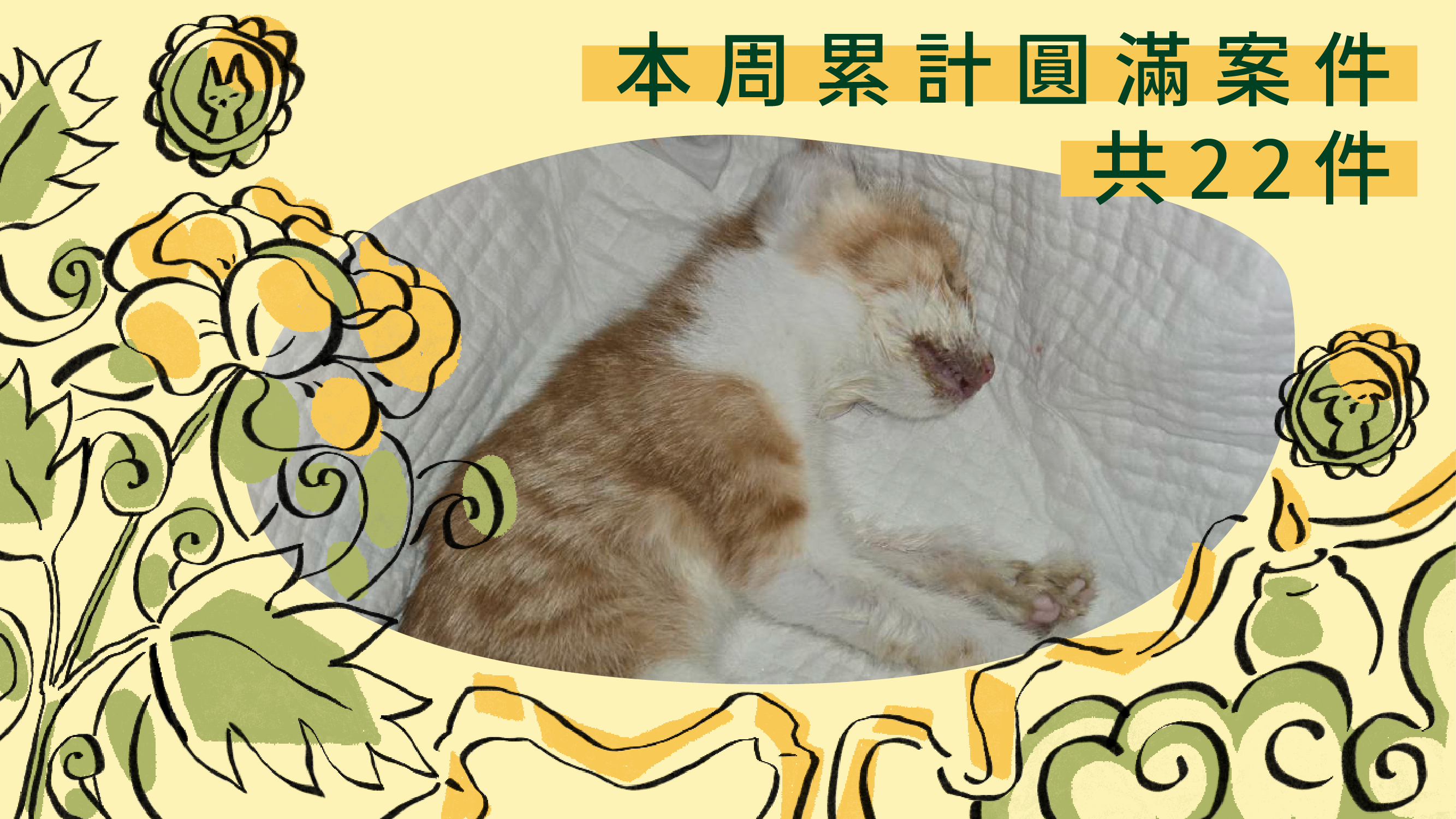 本周累計圓滿案件共 22 件,為本週火化的浪浪們進行藥懺法會,透過不動如來的庇護,祝願他們離苦得樂,下輩子不再流浪,特別感謝下列善心通報民眾: