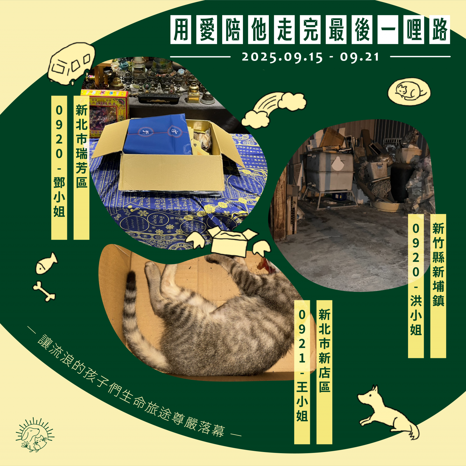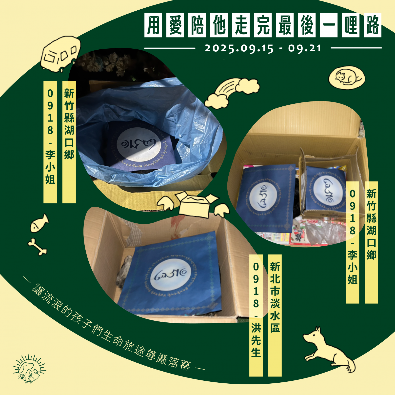 🌼以上案件皆在 9/21 火化完畢,並於 9/22 完成藥懺法事圓滿及灑葬,透過不動如來的庇護,祝願他們離苦得樂,下輩子不再流浪。每個案件我們會親自負責,將每位浪浪「接體—火化—灑葬—祝福」一條龍照護,為他們的來世的安樂造福鋪路。