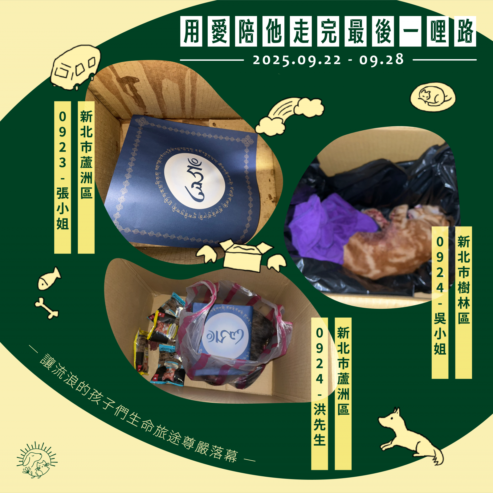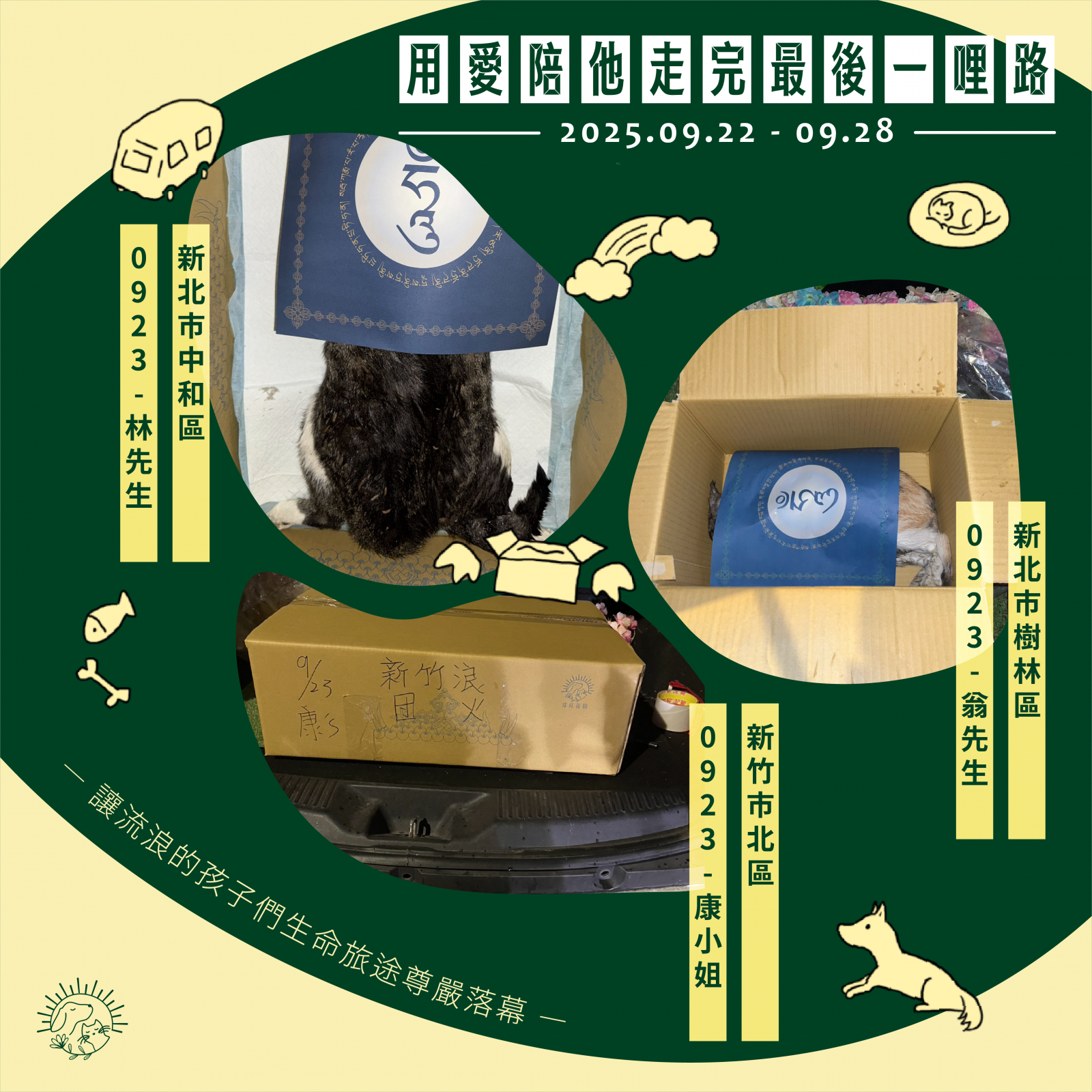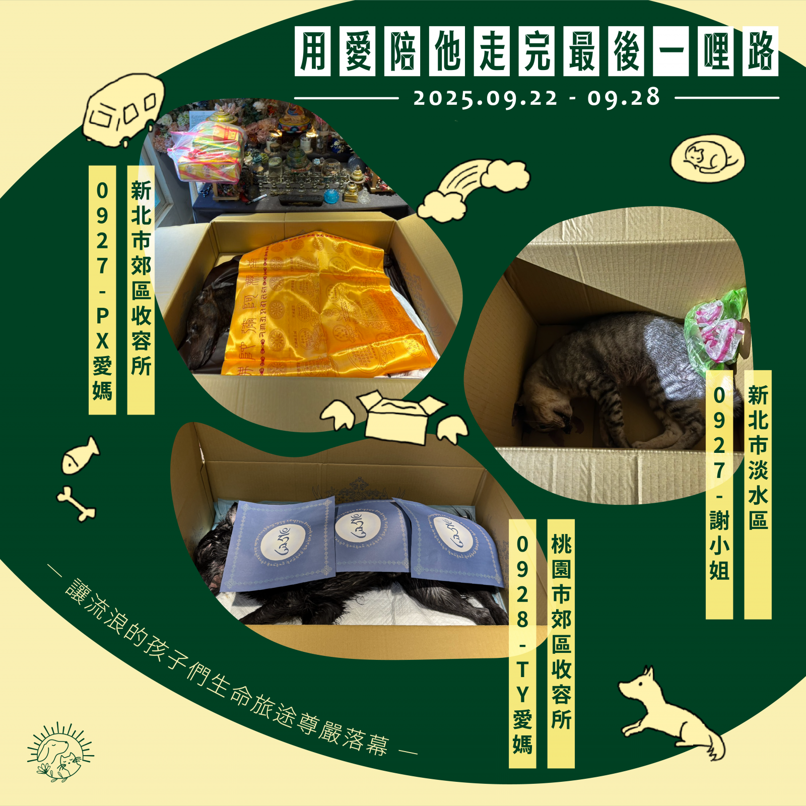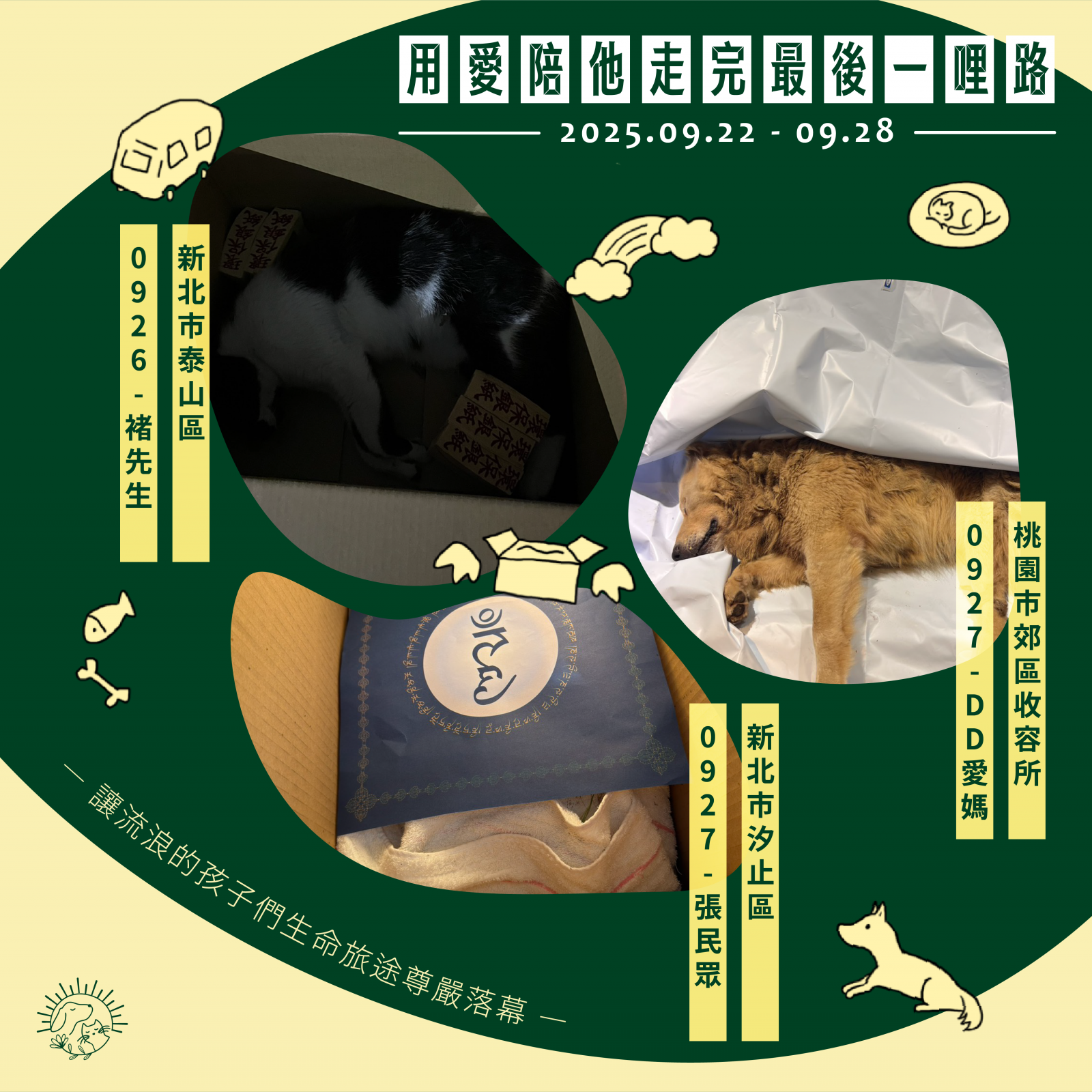 🌼以上案件皆在 9/28 火化完畢,並於 9/29 完成藥懺法事圓滿及灑葬,透過不動如來的庇護,祝願他們離苦得樂,下輩子不再流浪。每個案件我們會親自負責,將每位浪浪「接體—火化—灑葬—祝福」一條龍照護,為他們的來世的安樂造福鋪路。