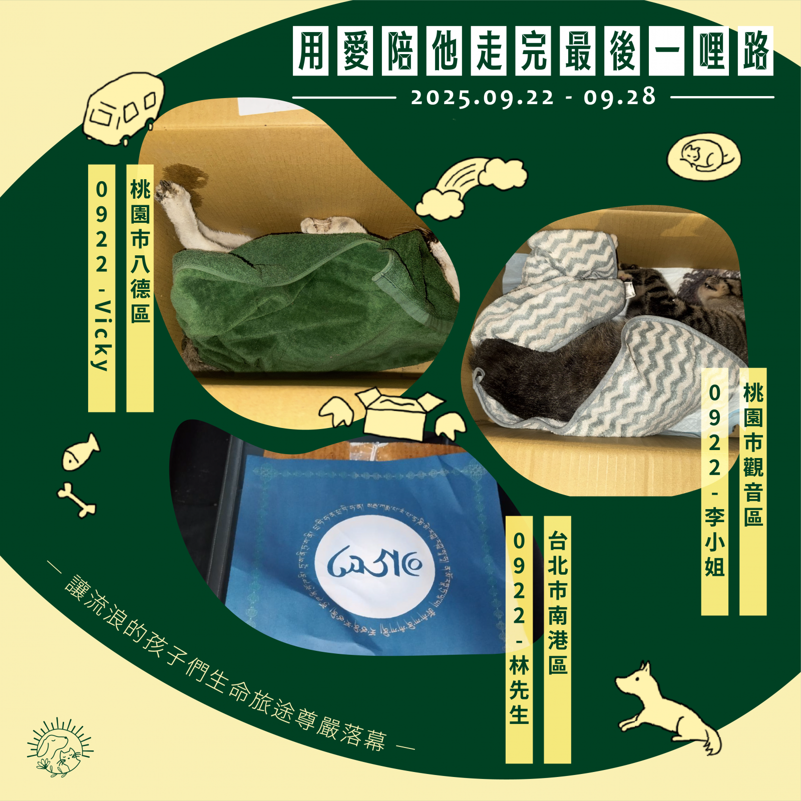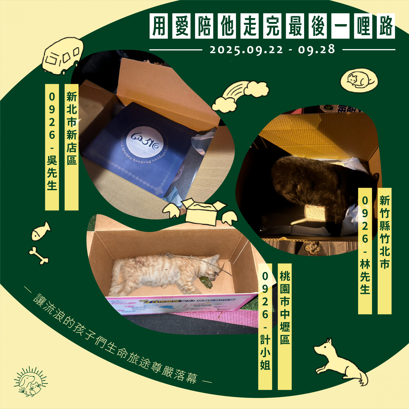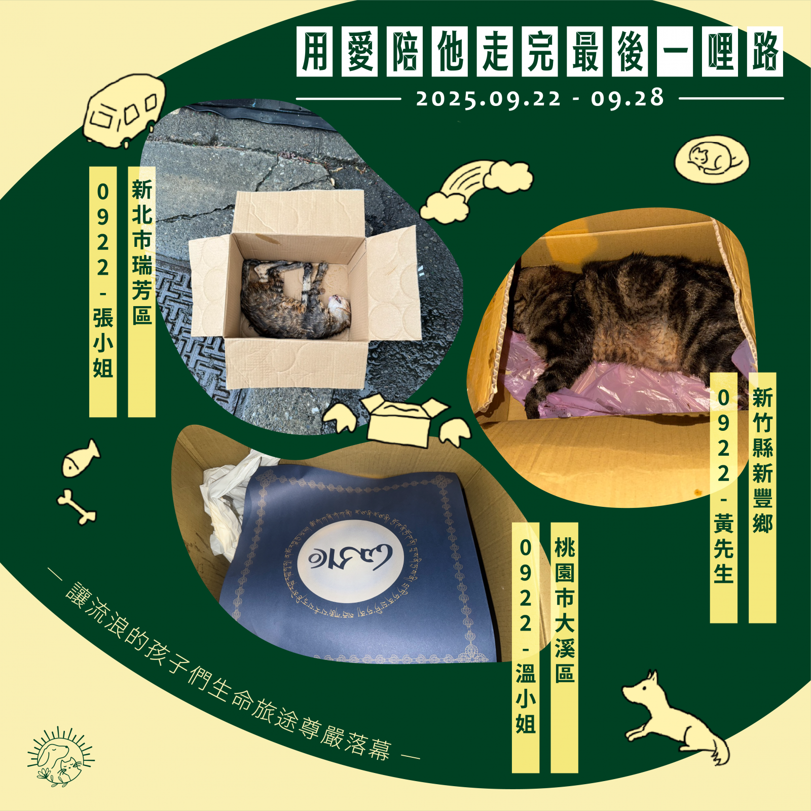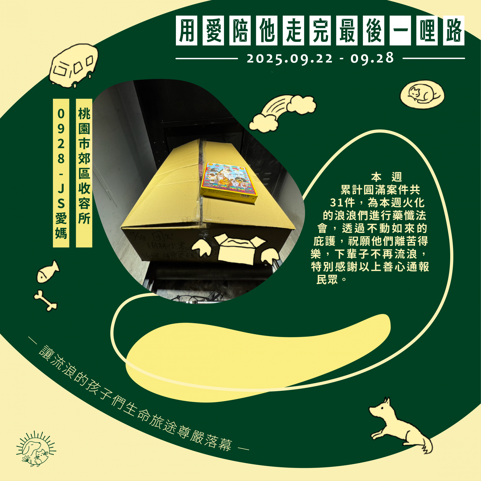 🌼以上案件皆在 9/28 火化完畢,並於 9/29 完成藥懺法事圓滿及灑葬,透過不動如來的庇護,祝願他們離苦得樂,下輩子不再流浪。每個案件我們會親自負責,將每位浪浪「接體—火化—灑葬—祝福」一條龍照護,為他們的來世的安樂造福鋪路。