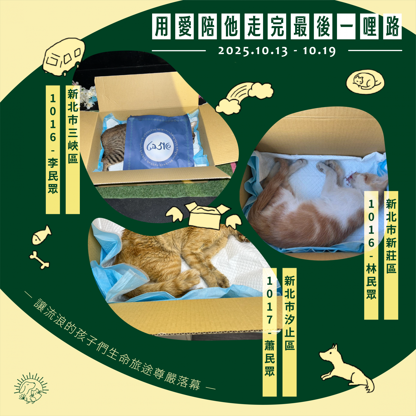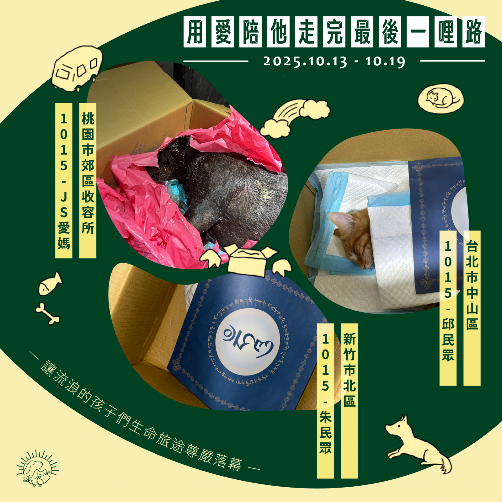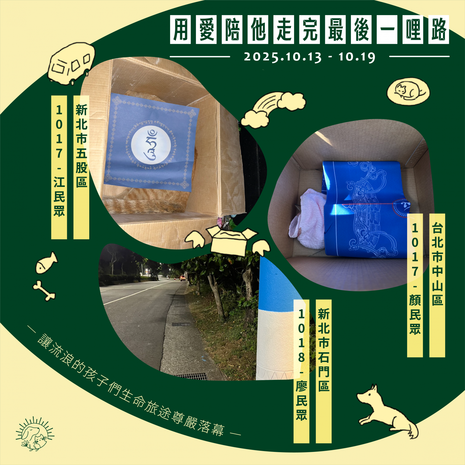 🌼以上案件皆在 10/19 火化完畢,並於 10/20 完成藥懺法事圓滿及灑葬,透過不動如來的庇護,祝願他們離苦得樂,下輩子不再流浪。每個案件我們會親自負責,將每位浪浪「接體—火化—灑葬—祝福」一條龍照護,為他們的來世的安樂造福鋪路。
