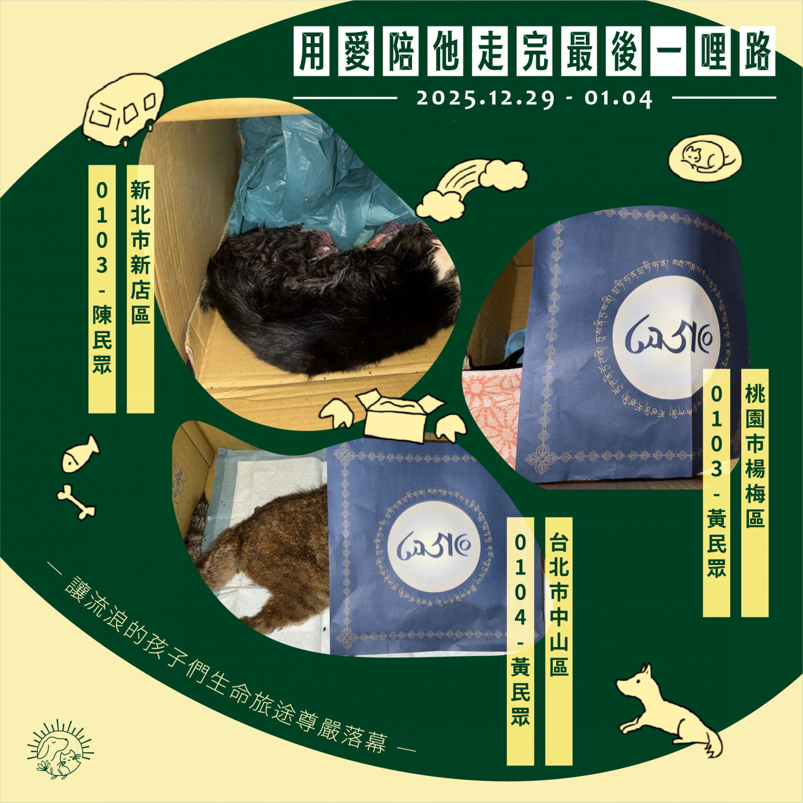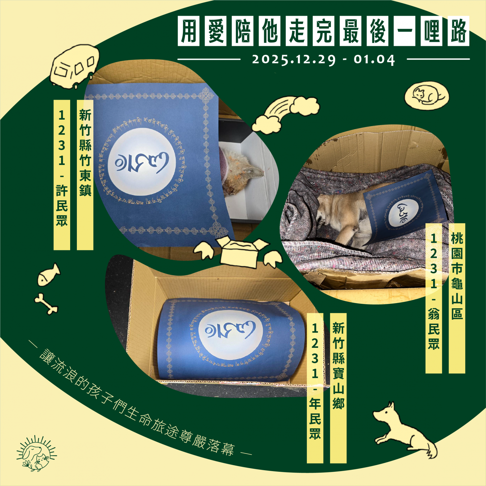 🌼以上案件皆在 1/4 火化完畢,並於 1/5 完成藥懺法事圓滿及灑葬,透過不動如來的庇護,祝願他們離苦得樂,下輩子不再流浪。每個案件我們會親自負責,將每位浪浪「接體—火化—灑葬—祝福」一條龍照護,為他們的來世的安樂造福鋪路。
