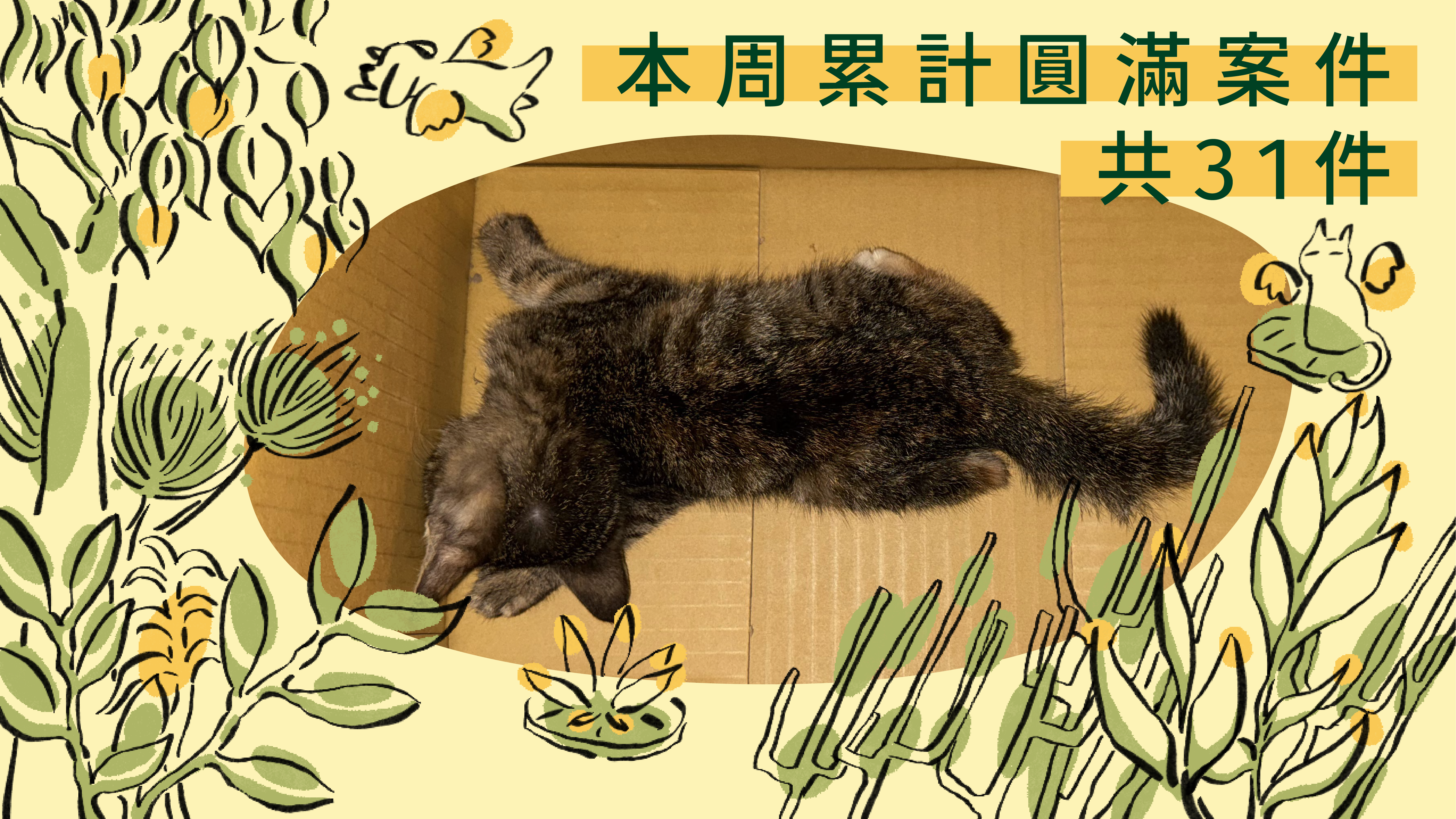 本周累計圓滿案件共 31 件,為本週火化的浪浪們進行藥懺法會,透過不動如來的庇護,祝願他們離苦得樂,下輩子不再流浪,特別感謝下列善心通報民眾: